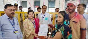 जीत के बाद प्रमाण पत्र लेती। हुईं सत्या चौरसिया। दमोह। नगरीय निकाय चुनाव में बहुमत के करीब रहने के बाद...
