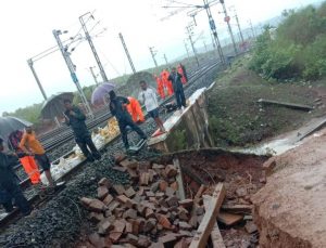 दमोह। लगातार हो रही मूसलाधार बारिश के कारण दमोह कटनी का ट्रैक पानी में बह गया ट्रक का सुधार कार्य...