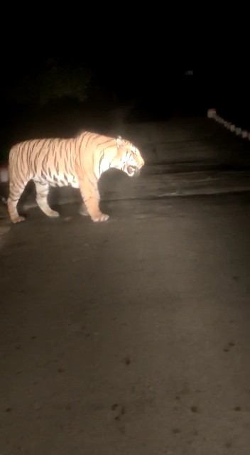 दमोह जिला चारों ओर से वन्य संपदाओं से भरा पड़ा है। यही वजह है कि यहां पर अक्सर खूंखार जंगली जानवर विचरण करते पाए जाते हैं। ताजा मामला जिले के पौंड़ी मानगढ़ रोड पर तेलन मार घाट का है। यहां पर मंगलवार की देर राय एक युवा टाइगर को विचरण करते देखा गया। जो रात्रि में रोड से जंगल में माला तालाब से कुंडम बीट की ओर जा रहा था। दरअसल प्रदेश के सबसे बड़े नौरादेही अभयारण की सीमा दमोह, सागर और नरसिंहपुर जिले को छूती है। दो दूसरी ओर पन्ना टाइगर रिजर्व दमोह जिले के वनांचलों को मिलाकर बनाया गया है। जिसके कारण तीन तरफ से पूरा दमोह अभ्यारण्य और रिजर्व से लगा हुआ है। जब टाईगर को लोगों ने कैमरे में कैद किया तो उनमें रोमांच के साथ टाईगर के हमले का भय भी था। वन विभाग ने