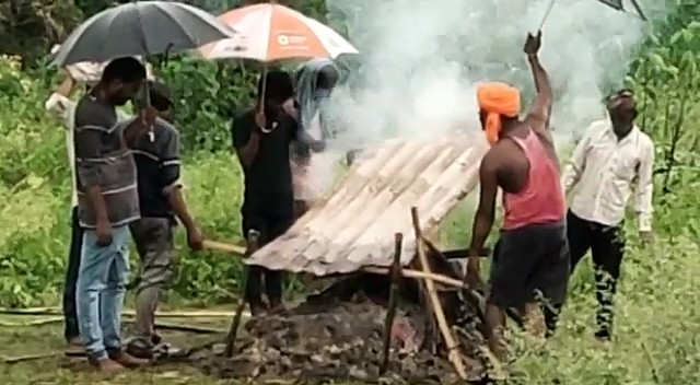 दमोह। इंसान को ना जीते जी सुख है न मौत के बाद चैन। मरने के बाद भी परिजनों को करना पड़ती है जद्दोजहद। जी हां हम बात कर रहे हैं सागर जिले की बीना तहसील के पाली गांव की। यहां पर मरने के बाद भी इंसान की अस्थियांऔर राख बचाने के लिए परिजनों को जद्दोजहद करना पड़ती है। ताजा मामला हाल ही में सामने आया है। यहां 70 वर्षीय मुन्नालाल अहिरवार की मौत हो गई। परिजन और ग्रामीण उसका शव लेकर श्मशान घाट पहुंचे वहां पर जैसे ही चिता को अग्नि दी तो एकदम से बारिश शुरू हो गई। चिता ठंडी न पड़ जाए यह सोच कर अपने साथ लाए हुए छाता लोगों ने खोल दिए और चिता से कुछ ऊपर करके खड़े हो गए ताकि उसको बुझने से बचाया जा सके। इसी दौरान परिजन दौड़कर घर तक गए और किसी तरह एक टीन की व्यवस्था कर ले आए और उसे लकड़ियों के सहारे चिता के ऊपर रख दिया। ताकि मृतक का संस्कार अच्छे से हो जाए। ग्रामीण बताते हैं कि सरकार कितने ही विकास के दावे और वादे कर ले लेकिन हमारे गांव की हकीकत से वह मुकर नहीं पाएंगे। यहां पर जब भी बारिश के दौरान किसी की मौत होती है तो उसका अंतिम संस्कार कुछ ऐसे ही तरीके से करना पड़ता है। अन्यथा मुर्दा जलने के बात यदि पानी गिरता है तो राख और अस्थियां तक उस पानी में बह जाती हैं। यहां के पूर्व सरपंच कहते हैं कि 3:00 से 8:00 बनाने का प्रयास किया गया लेकिन राजनीतिक दखल के कारण उसका काम शुरू नहीं हो सका। उस पर आसपास की कॉलोनी वाले भी विरोध करते हैं।