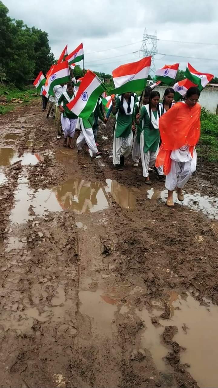 दमोह। ग्राम कंदवा में कीचड़ के रास्ते छात्राओं ने 1 किलोमीटर की लंबी रैली निकाली। उसके बाद स्वाधीनता का पर्व 15 अगस्त उत्साह से मनाया। लेकिन पैर कीचड़ से सने हुए थे।