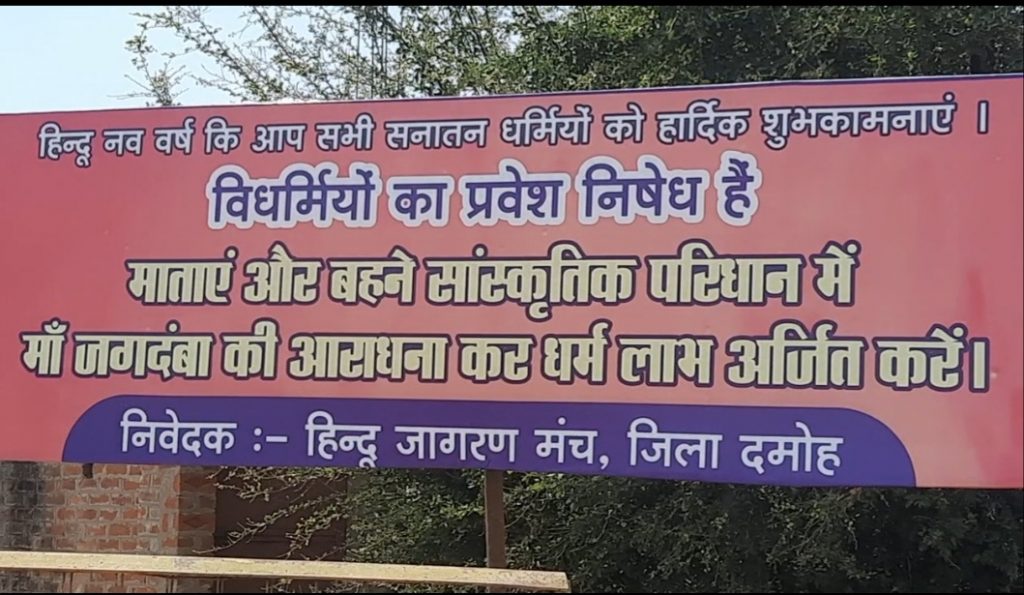 दमोह। चैत्र प्रतिपदा के साथ ही नवरात्रि पर्व शुरू हो गया है वही नगर के प्रमुख मंदिर के बाहर लगा बैनर अब चर्चाओं के साथ कौतुहल का विषय बन गया है।
