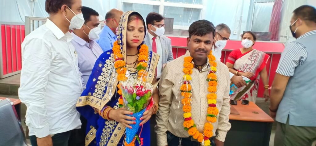 दोनों पक्षों में राजीनामा होने के बाद प्रधान न्यायाधीश भगवत प्रसाद पांडेय, अपर सत्र न्यायाधीश नवीन पाराशर, श्रीमती रजनी प्रकाश बाथम की उपस्थिति में दोनों ने एक दूसरे को वरमाला पहनाई। न्यायालय परिवार ढोल नगाड़ों के साथ मंदिर पहुँचा व दोनों पक्षों को उनके सुखद वैवाहिक जीवन का आशीर्वाद दिया।