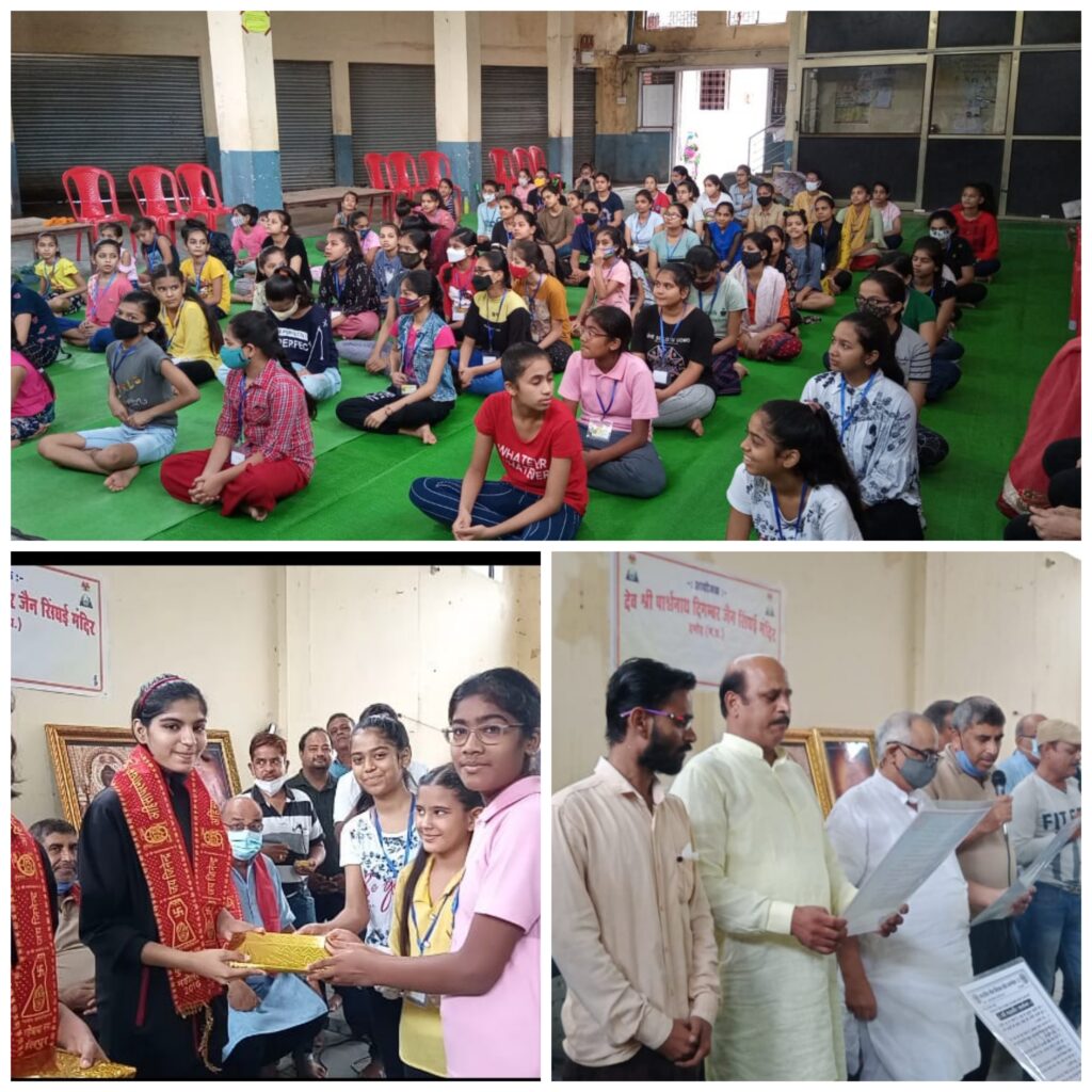 आयोजन समिति ने बताया की आज के ही दिन गौतम स्वामी को भगवान महावीर स्वामी के रुप में योग्य गुरु की प्राप्ति हुई थी। जिस कारण आज हम गुरु पूर्णिमा पर्व मनाते हैं एवं योग्य शिष्य मिलने के बाद आज के ही दिन भगवान महावीर स्वामी जी की प्रथम देशना हुई थी। जिस कारण आज वीर शासन जयंती भी मनाई जाती है। वैसे ही गुरु जो हमें भव पार करा दे, हमें प्राप्त हों ऐसे भाव से आज गुरुपूर्णिमा पर वर्तमान के महावीर हमारे गुरु आचार्य श्री विद्यासागर जी महाराज का गुणानुवाद किया आत्मरक्षा प्रशिक्षण शिविर के शिक्षक नित्या एवं निष्ठा को शिवरार्थी द्वारा सम्मानित किया गया। प्रशिक्षकों द्वारा सभी छात्रों को चॉकलेट वितरित की गई। कार्यक्रम का संचालन दिलेश चौधरी एवं जिनेन्द्र उस्ताद द्वारा किया गया एवं आभार आलोक पलंदी ने व्यक्त किया।