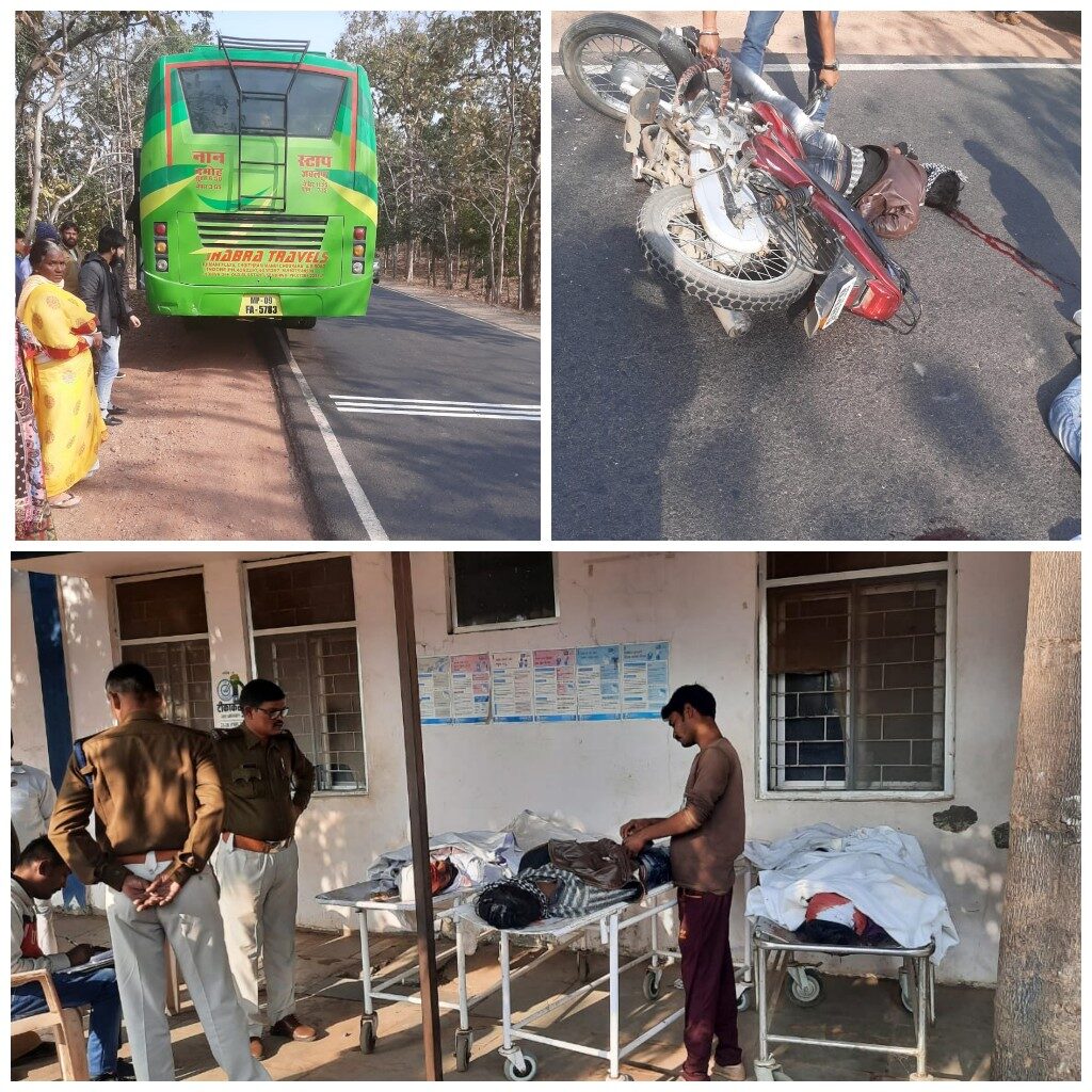 दमोह। दमोह-जबलपुर स्टेट हाईवे पर आज दोपहर एक बस और मोटरसाइकिल में हुई भिड़ंत में तीन लोगों की मौत हो गई। घटना में जहां बाप, बेटे चल बसे तो वहीं उनका दामाद भी चल बसा।