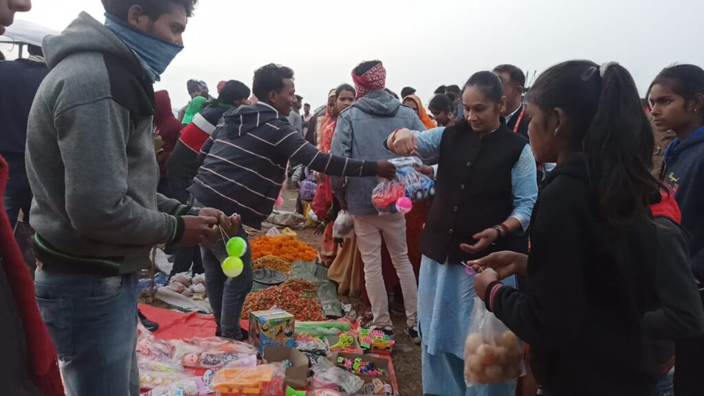 मनसा माता के दरबार में अपना माथा टेकने के साथ ही उन्होंने पथरिया क्षेत्र के लोगों की खुशहाली की कामना भी माता से की और उसके बाद वह बच्चों के साथ मेले में पहुंच गई। उन्होंने मेले में लगाए गए विशालकाय बलून झूले पर जमकर उछलकूद की। वह छोटे छोटे बच्चों के साथ बार बार ऊपर चढ़ती और फिसलकर आ जाती। यह नजारा काफी देर तक चलता रहा और लोग के साथ इसका भी आनंद उठाते रहे।