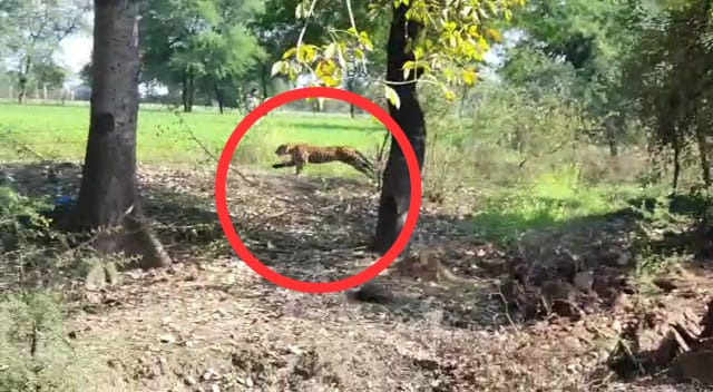 शोर मचाया तो भागा तेंदुआ